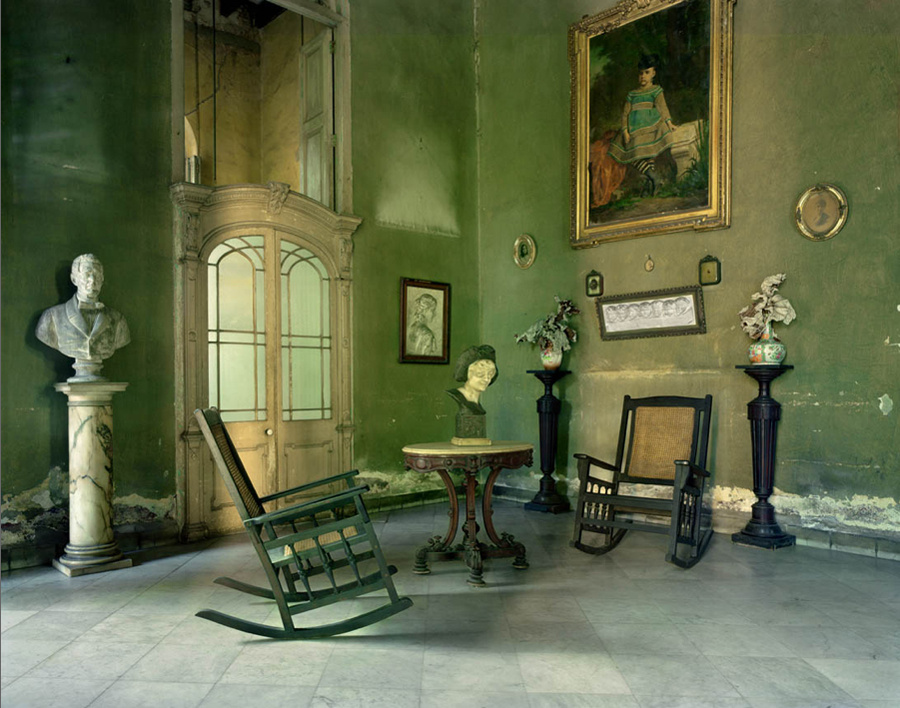 These colored photographs capture contemporary cuban spirit through suggestions of every day life. Decrepit buildings hide refined interiors still beautifully furnished.